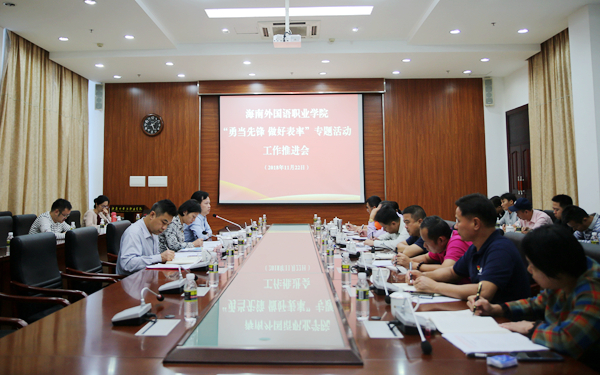 今年7月底,根据省委部署要求,我院在全院范围内开展“在建设海南自由贸易试验区和中国特色自由贸易港实践中勇当先锋、做好表率”专题活动(简称“勇当先锋、做好表率”专题活动),引导广大党员干部、教职员工从加强学习教育,坚定践行“四个意识”,坚定“四个自信”;加强作风建设,大力弘扬敢闯敢试、敢为人先、埋头苦干的特区精神;发挥外语办学特色,为我省营造国际化营商环境提供人才支持;落实实施细则,深化学院“放管服”改革;稳步推进工作任务,坚决打赢教育脱贫攻坚战;坚持问题导向,着力破除体制机制弊端;主动作为,积极参与海南百日大招商(项目)活动;因势而为,因需而谋,抓好人才培养和引进工程等十个方面“学、思、践、悟”,勇当先锋、做好表率。截止目前,我院“勇当先锋、做好表率”专题活动正稳步推进中,各项工作均逐步取得成效。下一步,我院上下将进一步强化思想认识,全面把握目标任务,严格落实责任要求,凝聚共识和力量,精心组织、奋力推进,推动我院“勇当先锋、做好表率”专题活动再上新台阶。